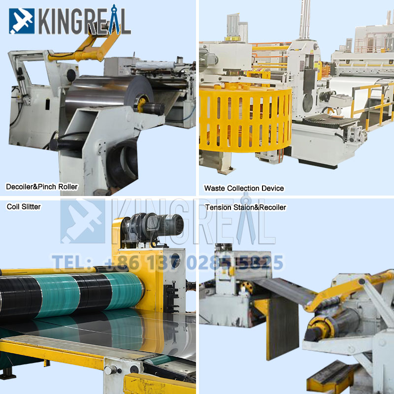 किंग्रियल स्लिटर स्टेनलेस स्टील स्लिटिंग लाइन मुख्य आहे डीकोइलर, स्टील स्लिटिंग मशीन आणि रेविंदर. त्याच वेळी, भिन्न घटक स्टेनलेस स्टीलच्या वैशिष्ट्यांनुसार डिझाइन केले आहेत.
